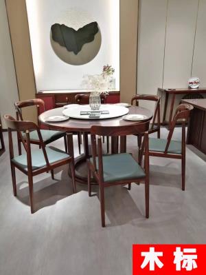 新中式餐廳實(shí)木圓形餐桌椅白蠟?zāi)綡LYY018